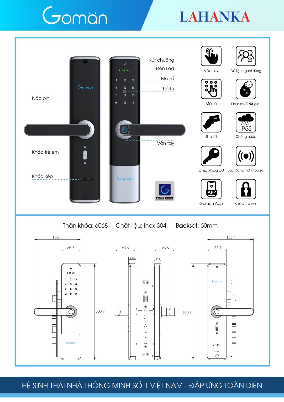 Khóa căn hộ Goman GM-SL285F (Black silver)
