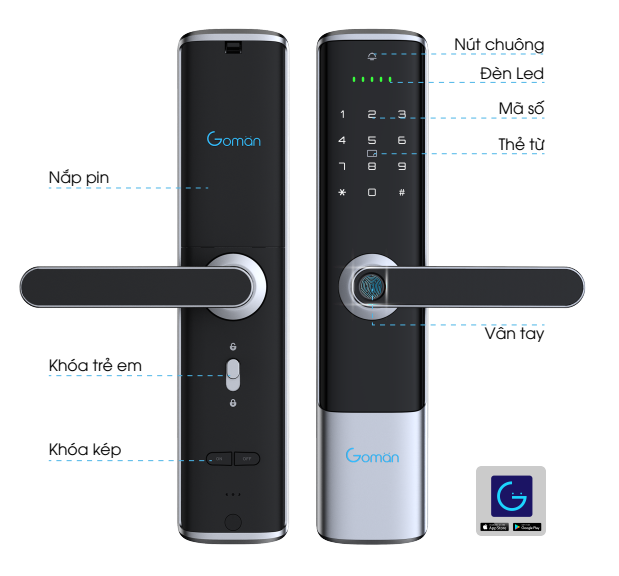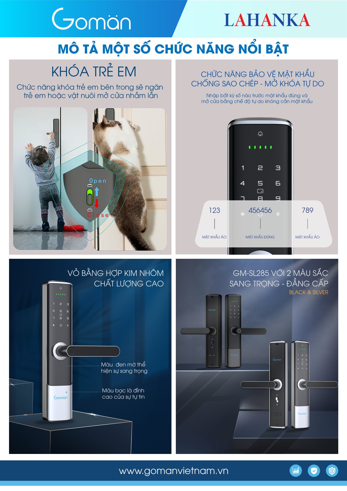 Khóa căn hộ Goman GM-SL285F (Black silver)